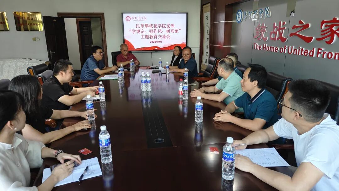 近日,民革攀枝花学院支部在攀枝花学院“统战之家”召开深化“学规定、强作风、树形象”主题教育交流会。攀枝花学院统战部部长张勤出席会议。