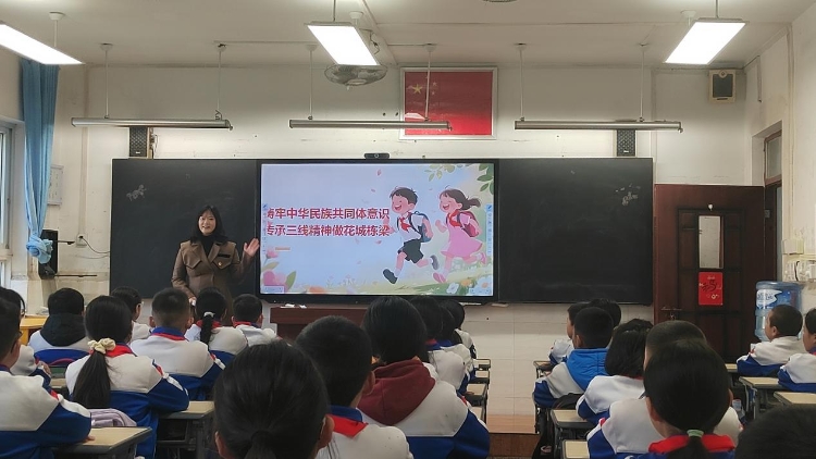 为切实发挥民族宗教领导干部在思想政治教育中的示范引领作用,强化“大思政课”育人实效,推动中小学思政课一体化建设。近日,东区民族宗教事务局为攀枝花市一小六年级的学生讲授了一堂生动的以“铸牢中华民族共同体意识 传承三线精神做花城栋梁”为主题的思想政治课,以家乡建设参与者、见证者的身份,带领同学们回望攀枝花的奋斗史诗。