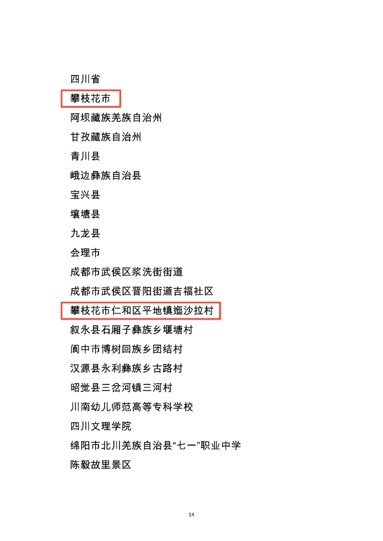 1月29日,国家民族事务委员会公布《关于命名第十二批全国民族团结进步示范区示范单位的决定》,攀枝花市被命名为“全国民族团结进步示范区”,仁和区平地镇迤沙拉村被命名为“全国民族团结进步示范单位”。
