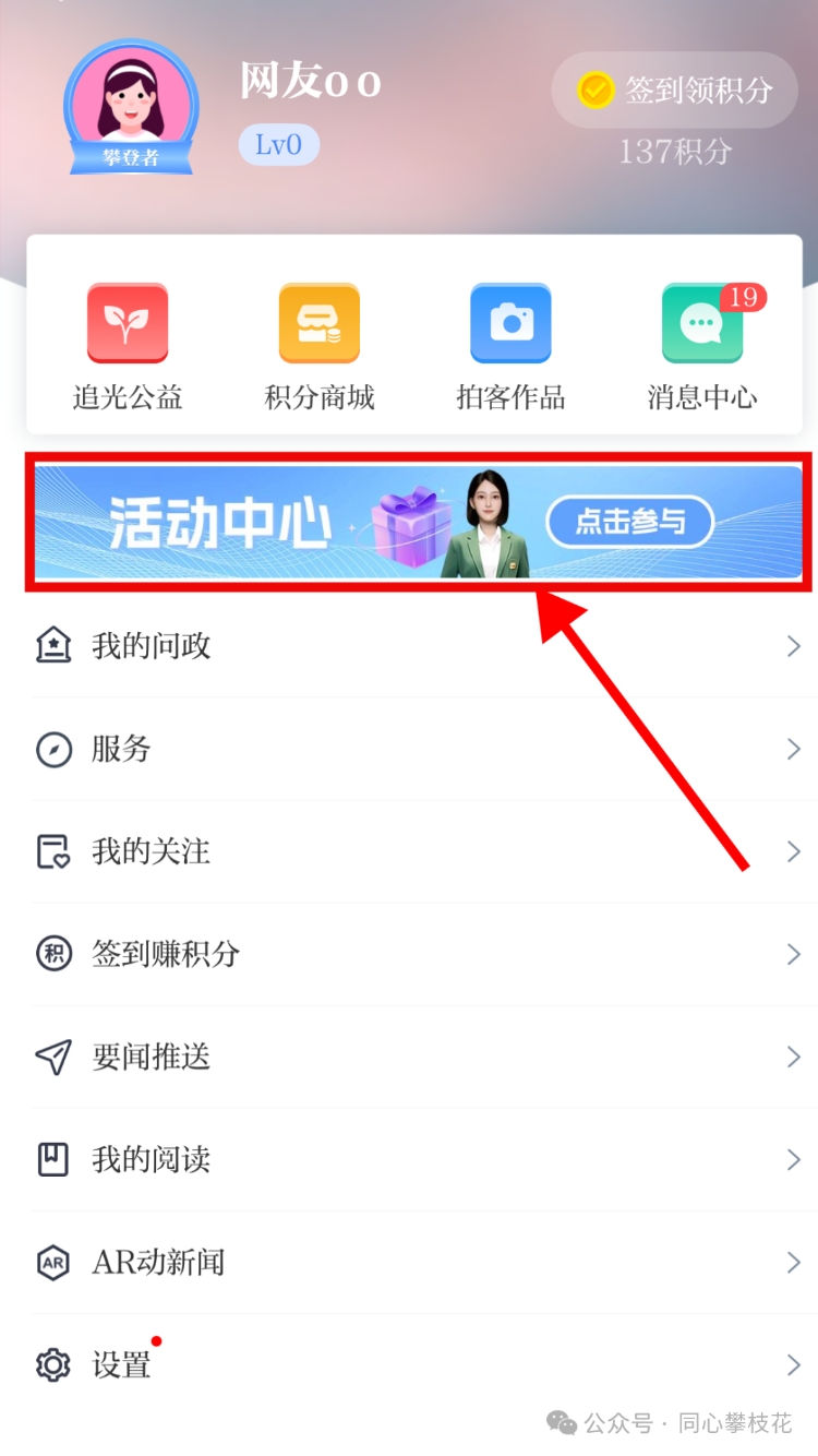 2.在川观新闻首页,点击【我的】一【活动中心】,找到《“我们的新征程”—学习贯彻党的二十届四中全会精神和省委十二届八次全会精神网络知识竞赛》活动图片,点击即可参与答题: