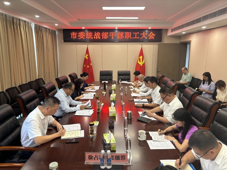 近日,市委统战部召开干部职工大会专题传达学习党的二十届四中全会、省委常委会(扩大)会议和市委常委会(扩大)会议精神,研究贯彻落实措施。