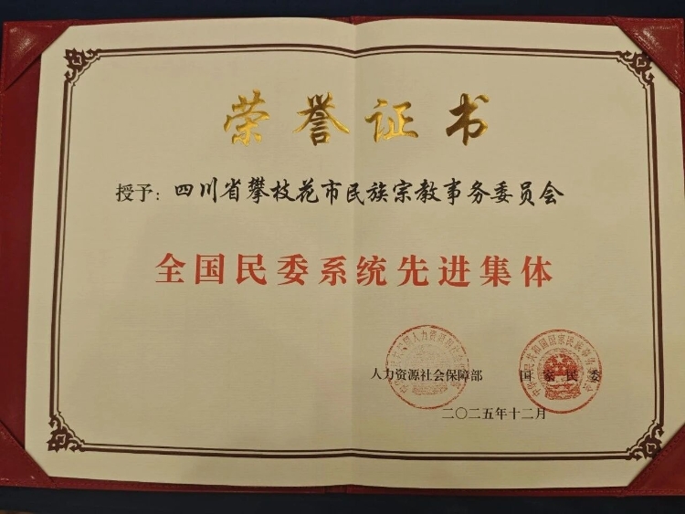 近日,人力资源社会保障部、国家民委联合印发了《关于第五届全国民委系统先进集体和先进个人的表彰决定》,对全国35个先进集体和35名先进工作者进行表彰,攀枝花市民族宗教事务委员会获评“全国民委系统先进集体”称号。